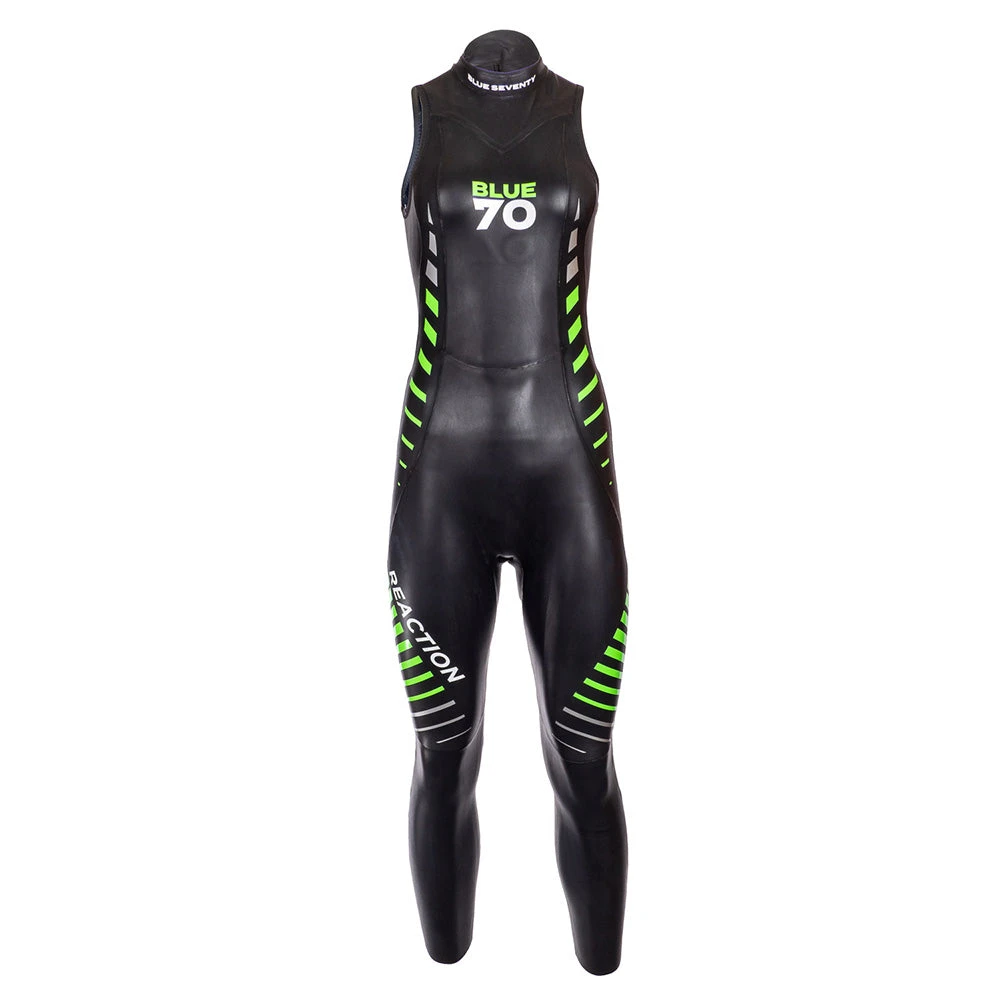The Women’s Sleeveless Reaction is purpose built for the most efficient swim while keeping you cooler in warmer water. Matching the redesigned Women’s Reaction wetsuit, the Sleeveless Reaction takes all the key performance upgrades and removes the full sleeves. This allows better heat regulation to keep your core temperature lower when the water is warmer while also encouraging natural body rotation, increasing distance per stroke and increasing comfort in the neck. What does this mean for you? A more flexible, more comfortable sleeveless wetsuit that reacts to your efforts and returns more speed than ever before.