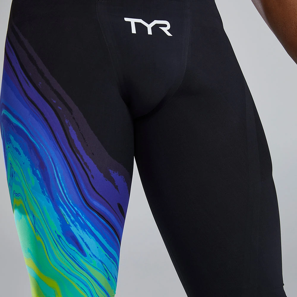 As the first and only technical suit in the industry to analyze drag from a microscopic perspective, the TYR Men’s Venzo™ Jammer Swimsuit utilizes ultra smooth fiber to thread a frictionless, durable fabric. Designed with state-of-the-art Surface Lift Technology™, Venzo™ Jammer prevents water from permeating its fabric, resulting in higher body position in the water.
